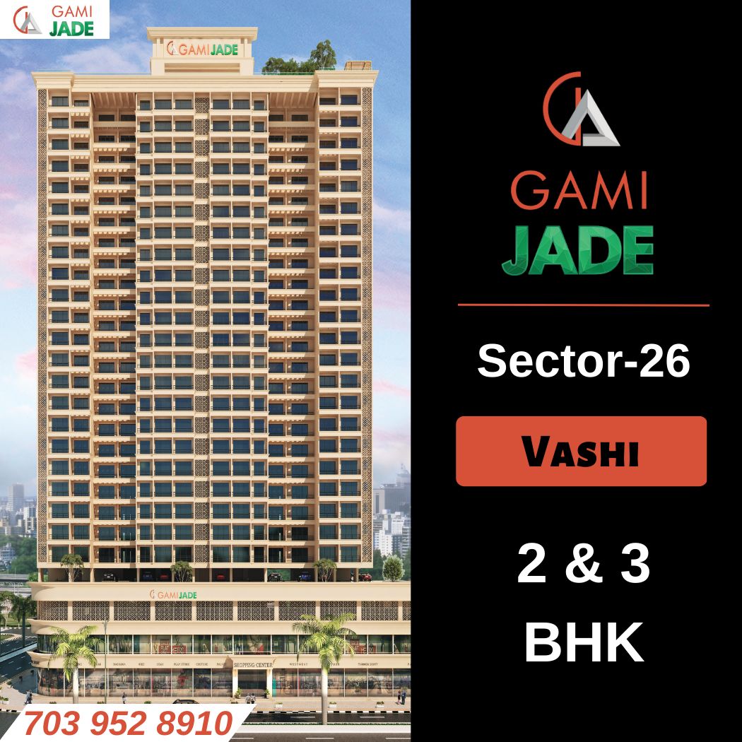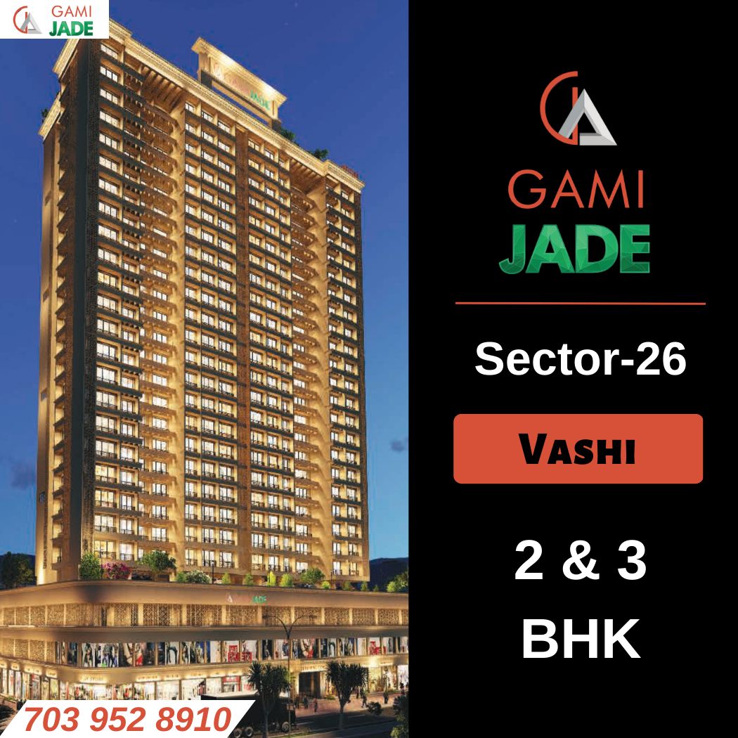 Gami Jade Vashi, Navi Mumbai is an OC Received - Ready To Move Project by Gami Group situated in the most premium location of Vashi, at Sector - 26 Plot no.01 offering 2, 3 BHK Flats with the availability of Jodi Apartments. Also get Floor Plan, Price Sheet, RERA ID, Reviews, Possession Timeline, Construction Status, Location Advantages, Address, Amenities & Specifications. Gami Jade Vashi is an Exclusive Tower of 22 storeys. Gami Jade Vashi Property Features Amenities like Landscape Garden, Kids' Play Area on the Rooftop, Jogging Track, Open Air Theatre, Sit-outs with Panoramic Views, Shimmering Swimming Pool, Well-equipped Gymnasium, Designer Lobby, Ample Parking Space, Hi-Speed Elevators, Sky Lounge, Sky Meditation Area, Senior Citizen’s Area, Relaxation/Yoga Lawn, Air Lounge. Gami Jade has Excellent Connectivity Hospitals – Rutuja Medical, Vinamra Swaraj Hospital, Palm Beach Hospital and Diagnostic Center, Cloudnine Hospital Vashi, and Fortis Hiranandani Hospital. School & Colleges – Orchids The International School, Avaion The International School, St. Lawrence School, Guru Global pre School, New Mumbai Primary School, Modern College. Shopping & mall – Palm Beach Galleria Mall, Inorbit Mall Vashi, Raghu Leela mall, IKEA, Satra Plaza, Royal Orchid Central Grazia, A.P.M.C Market, Janta Market, A.P.M.C. Onion Potato Market, Hotel Yogi Executive, Turbhe MIDC, RTO Navi Mumbai, Vashi station, Turbhe Station and many more.